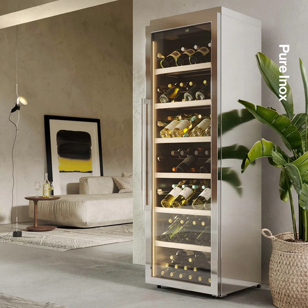 Skabet har som standard en enkelt temperaturzone, der kan justeres mellem 4°C og 18°C, hvilket gør det velegnet til både røde og hvide vine. For dem, der har behov for at opbevare forskellige typer vine ved separate temperaturer, er det muligt at opgradere til en multi-zone version mod et lille tillæg. Dette giver fleksibilitet til at opbevare flere vintyper under deres optimale forhold i ét skab.