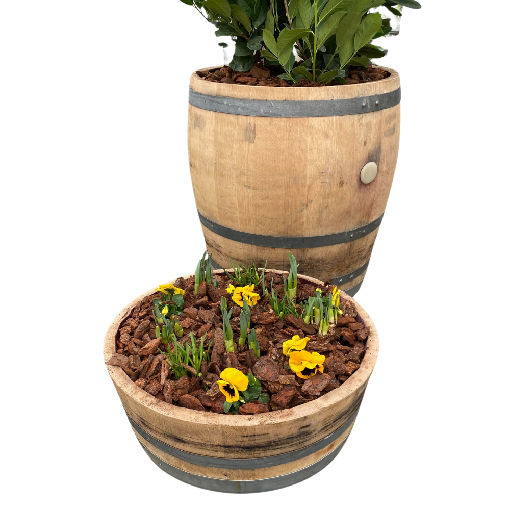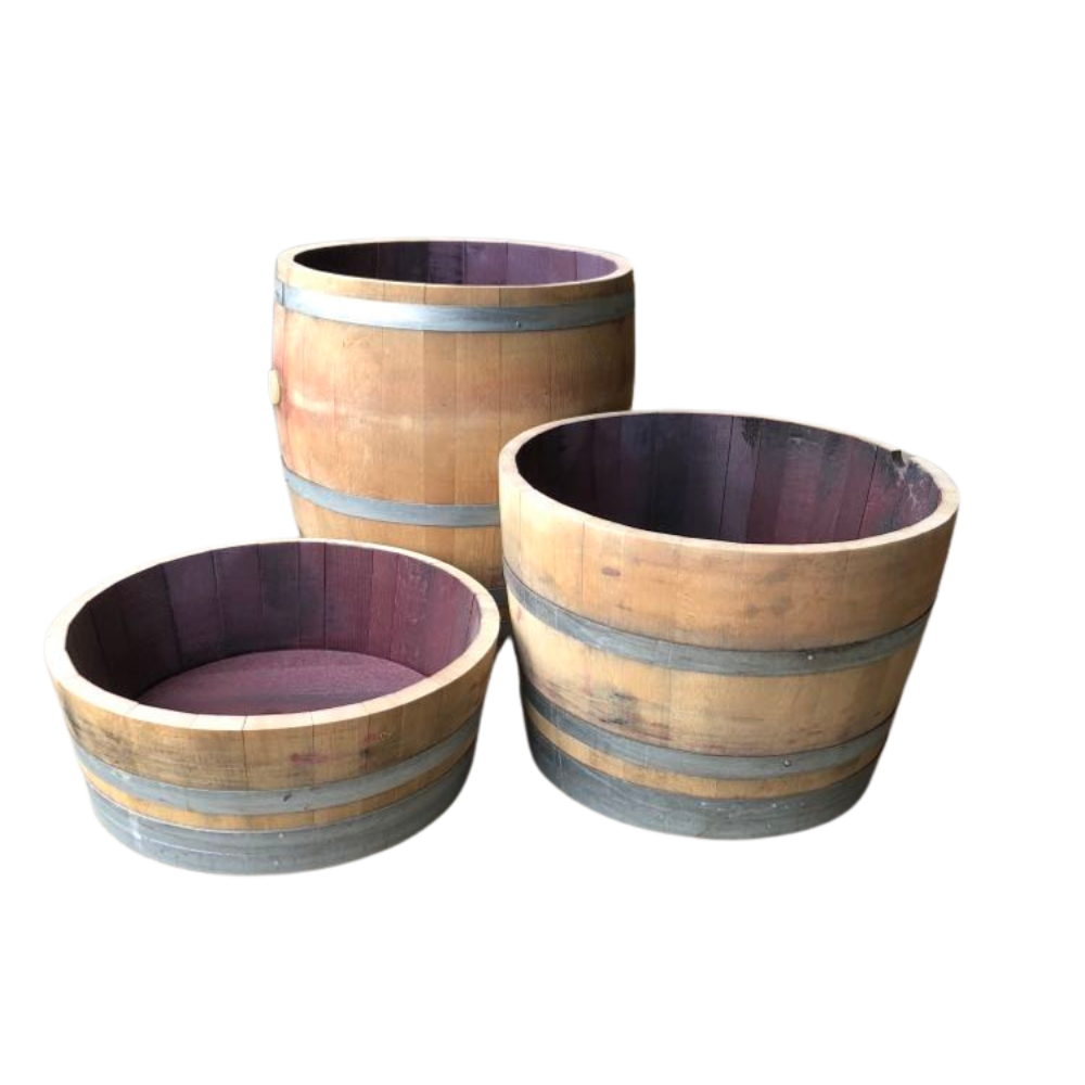 Bemærk, at nogle tønder kan have en (aftagelig) kastanjering i bunden af tønden – et typisk kendetegn for Bordeaux-vine. Og nogle tønder har måske allerede et hul i bunden af tønden (perfekt til dræning af planter).