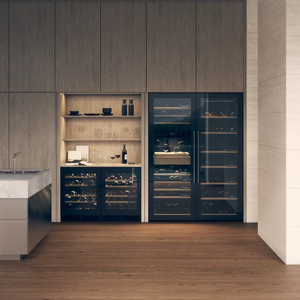 - UV-beskyttelse: At beskytte din vin mod skadeligt UV-lys er afgørende. Glasdøren til Wine Aging Cabinet er udstyret med UV-beskyttelse, der beskytter din samling mod potentielt skadelige UV-stråler.