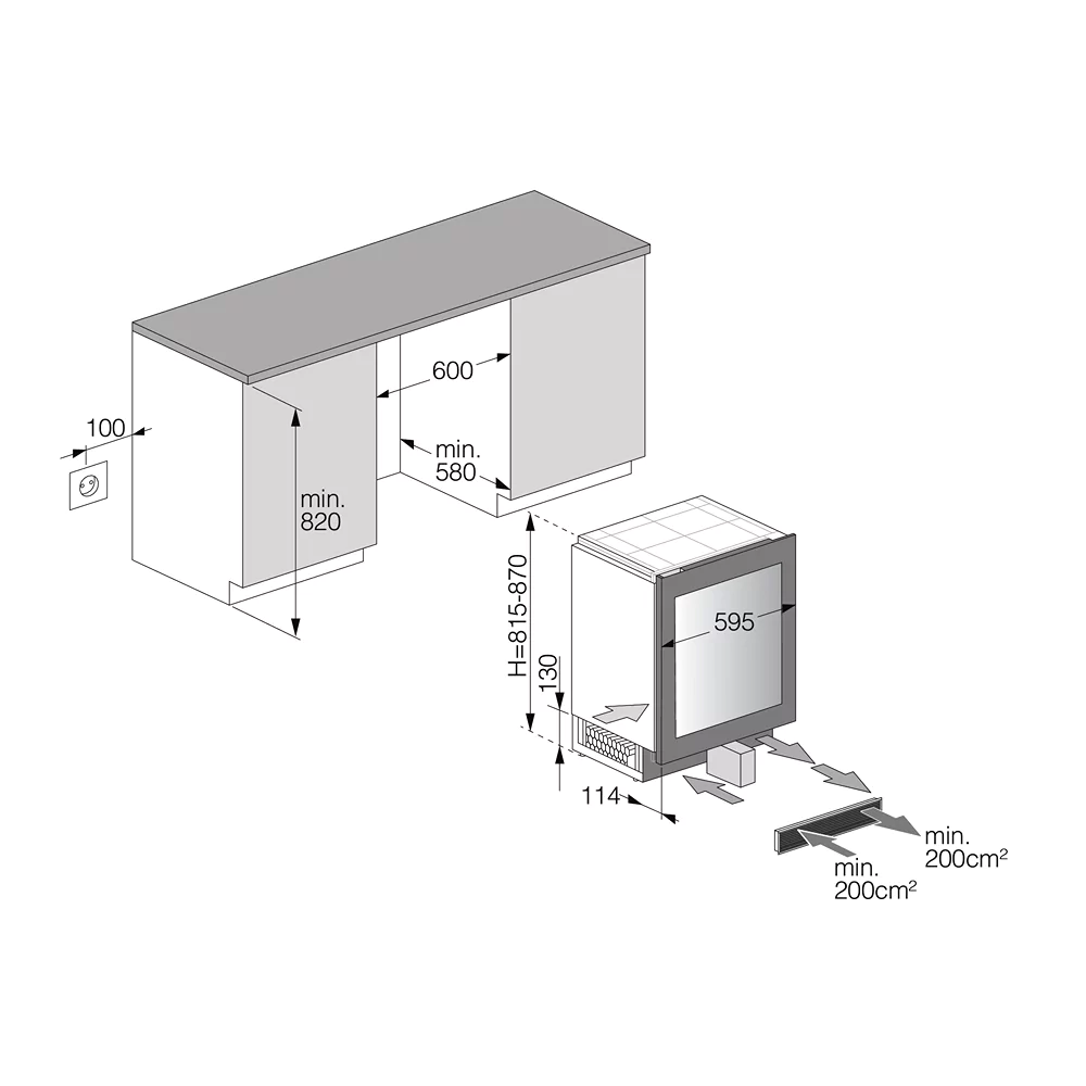 - Installation: Indbygget: Det indbyggede design integreres problemfrit i dit køkken eller underholdningsområde og giver et stilfuldt og sofistikeret udseende.