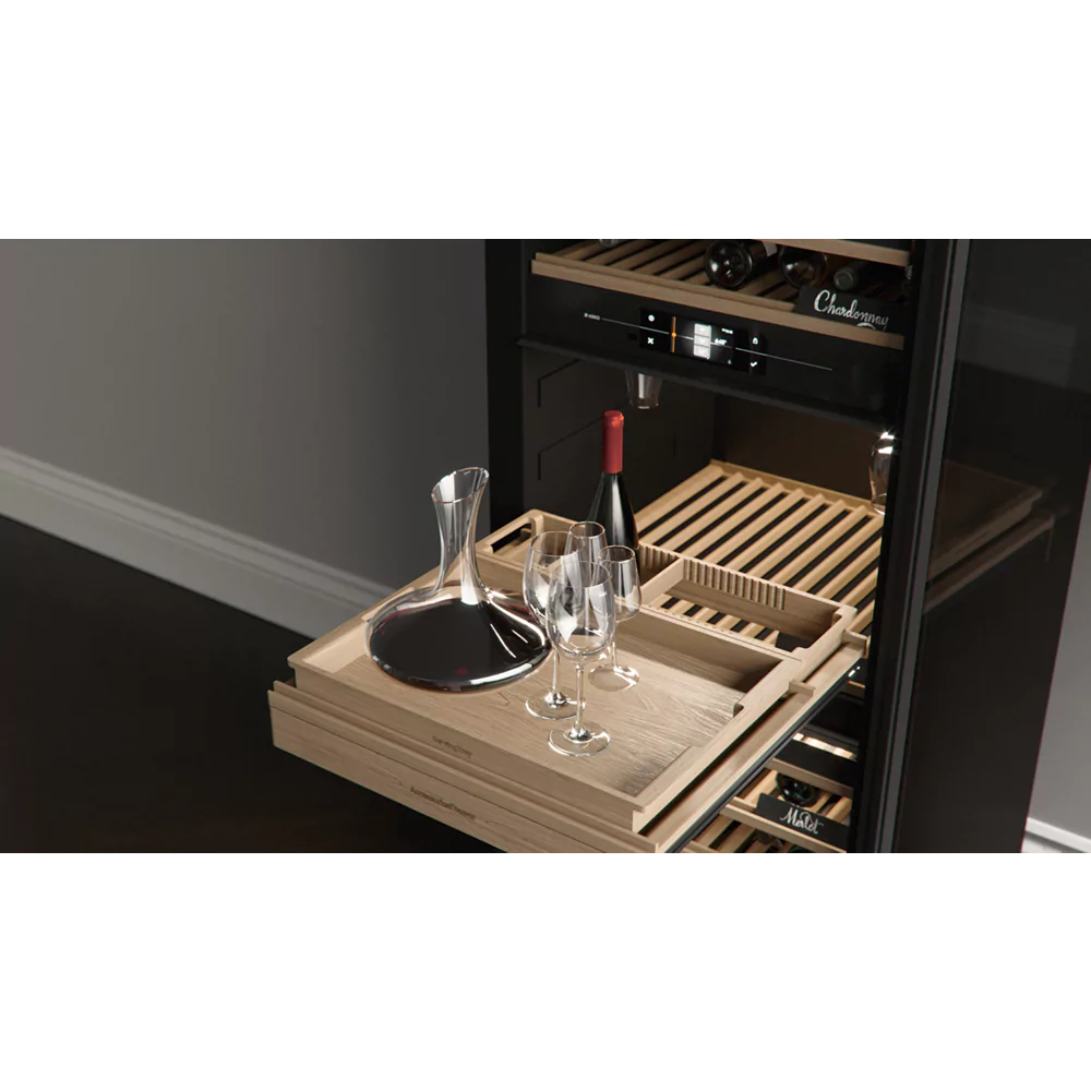 - Humidity Box: Inkluderet i skabet er en Humidity Box i ler, der sikrer den rette fugtighed og beskytter dine vine optimalt.