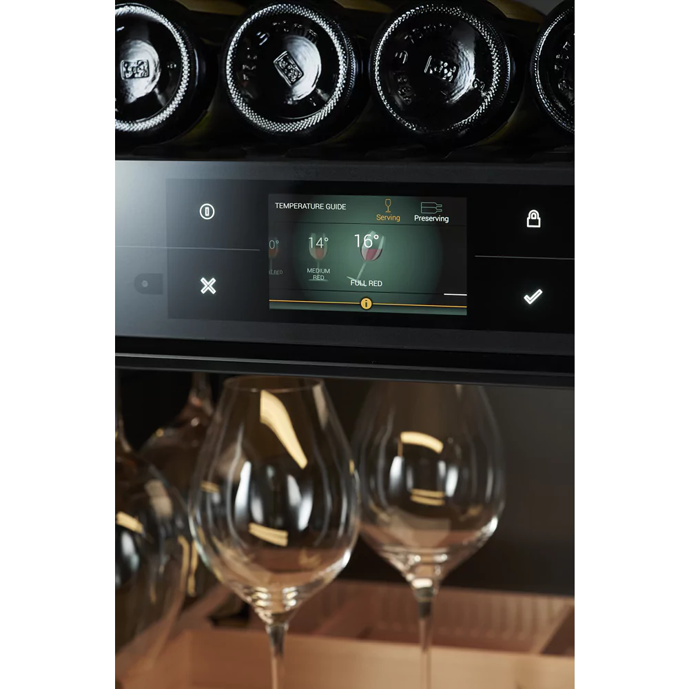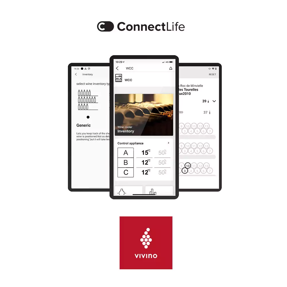 - Smart Integration: Få adgang til Vivino-databasen direkte fra din smartphone eller tablet for at holde styr på din vinsamling. Dette vinkøleskab inkluderer desuden et indbygget kamera, så du altid har overblik over din samling.