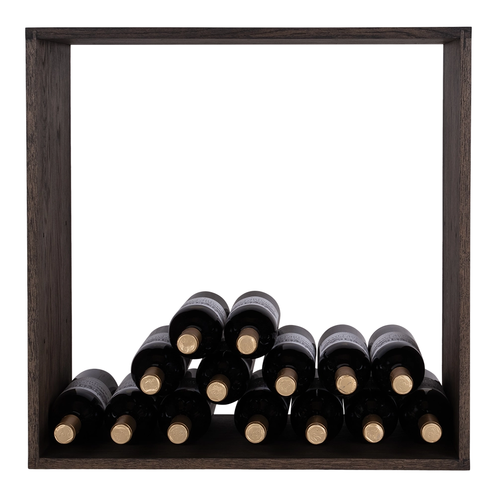 Reolmodulet her består af en ramme af massive oliebehandlede egeplader. Forskellige typer af indsats passer perfekt ind i denne ramme. Du kan købe skabslåge, en hylde eller en holder til dine glas og på den måde indrette din vinreol lige som det passer dig.