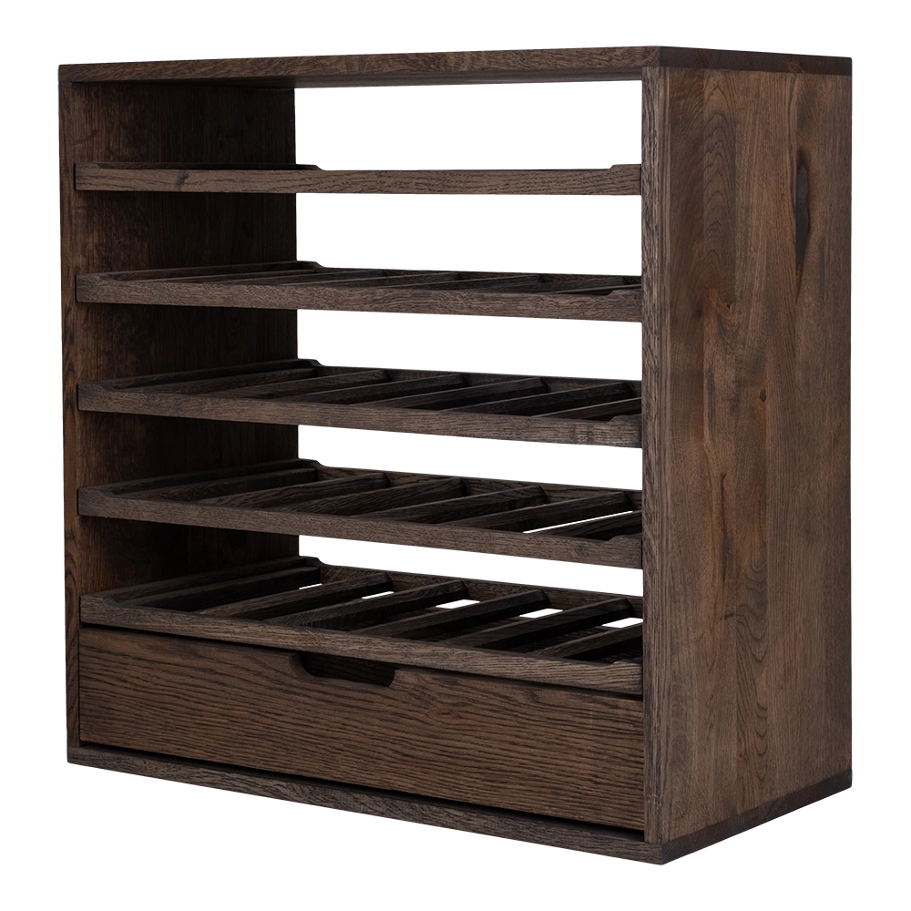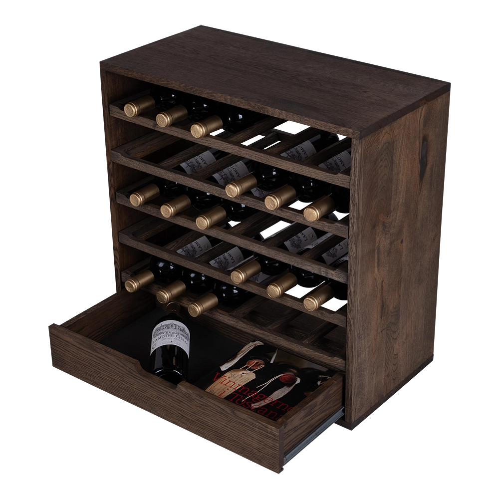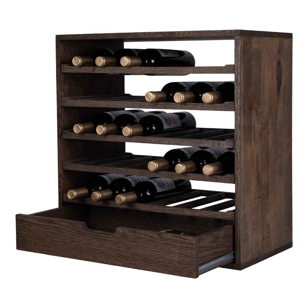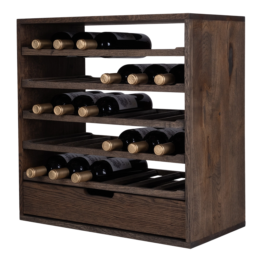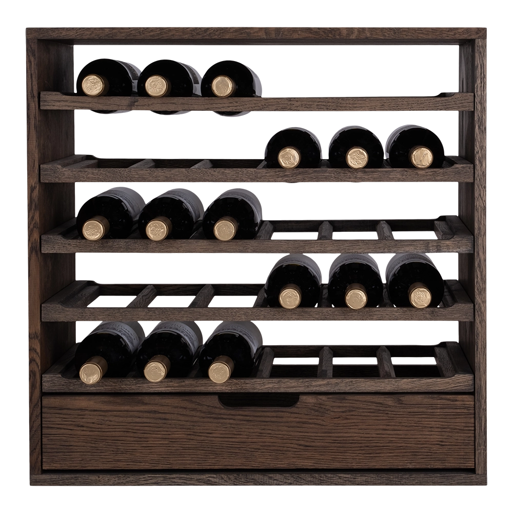 I denne udgave er der plads til i alt 30 flasker af typerne Bordeaux, Alsace og Bourgogne på lækre udtrækshylder. Nederst finder du en stor skuffe med plads til dit vinudstyr.