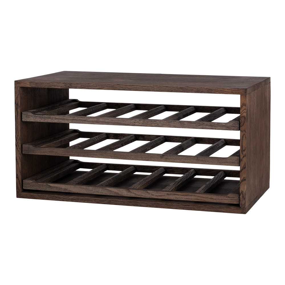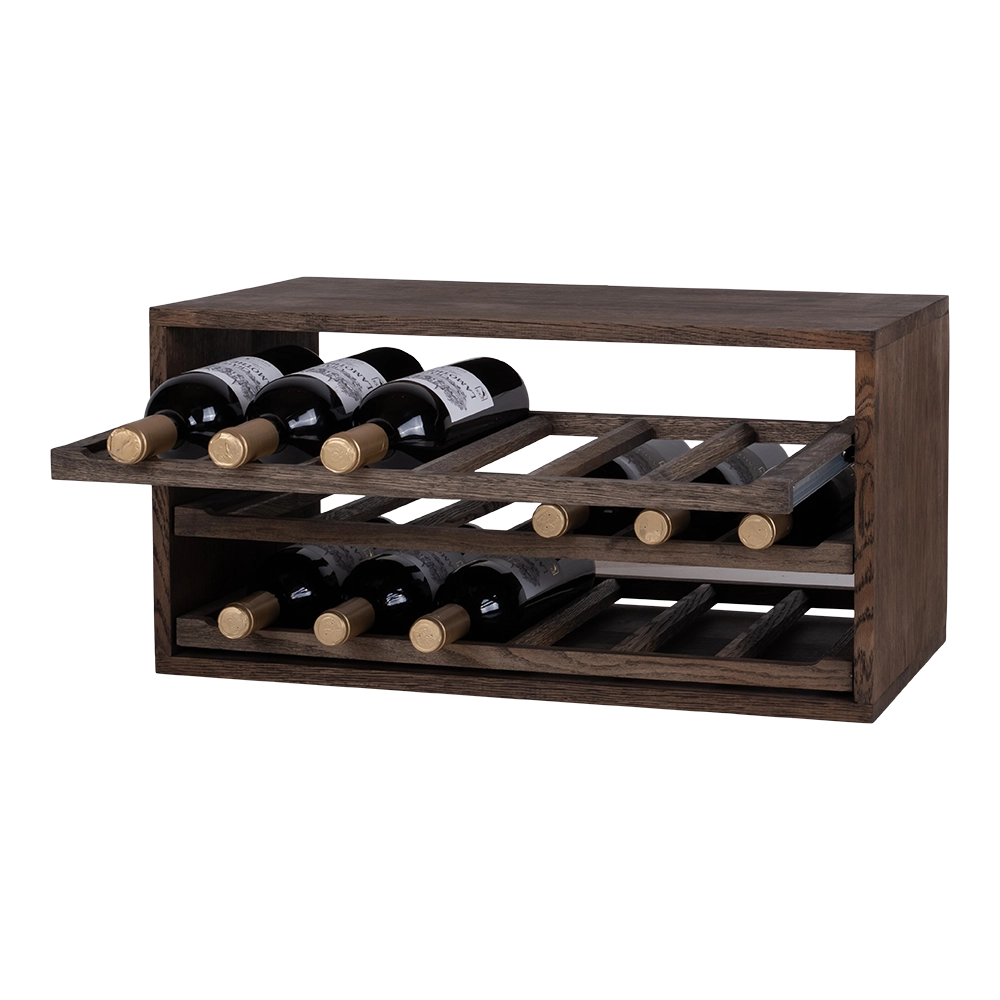 I denne udgave med 3 udtrækshylder er der plads til sammenlagt 18 flasker af typerne Bordeaux, Alsace og Bourgogne.