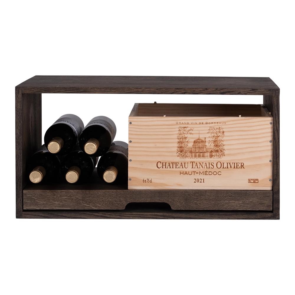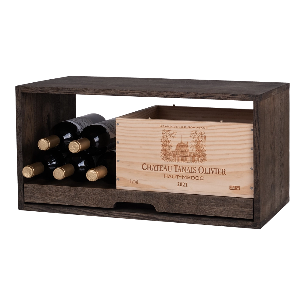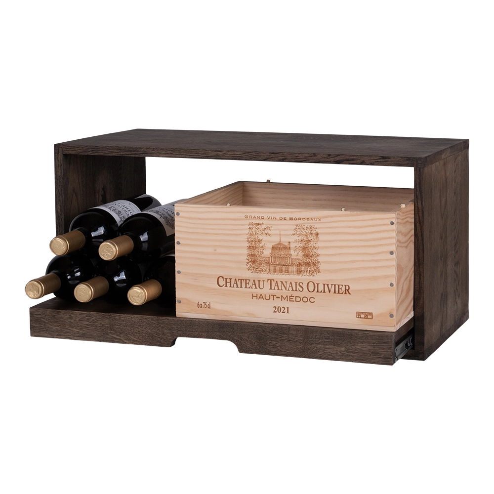 I denne udgave har du plads til at stille vinkasser til både 6 og 12 flasker, eller en kombination af vinkasser og flasker, alt efter eget ønske.