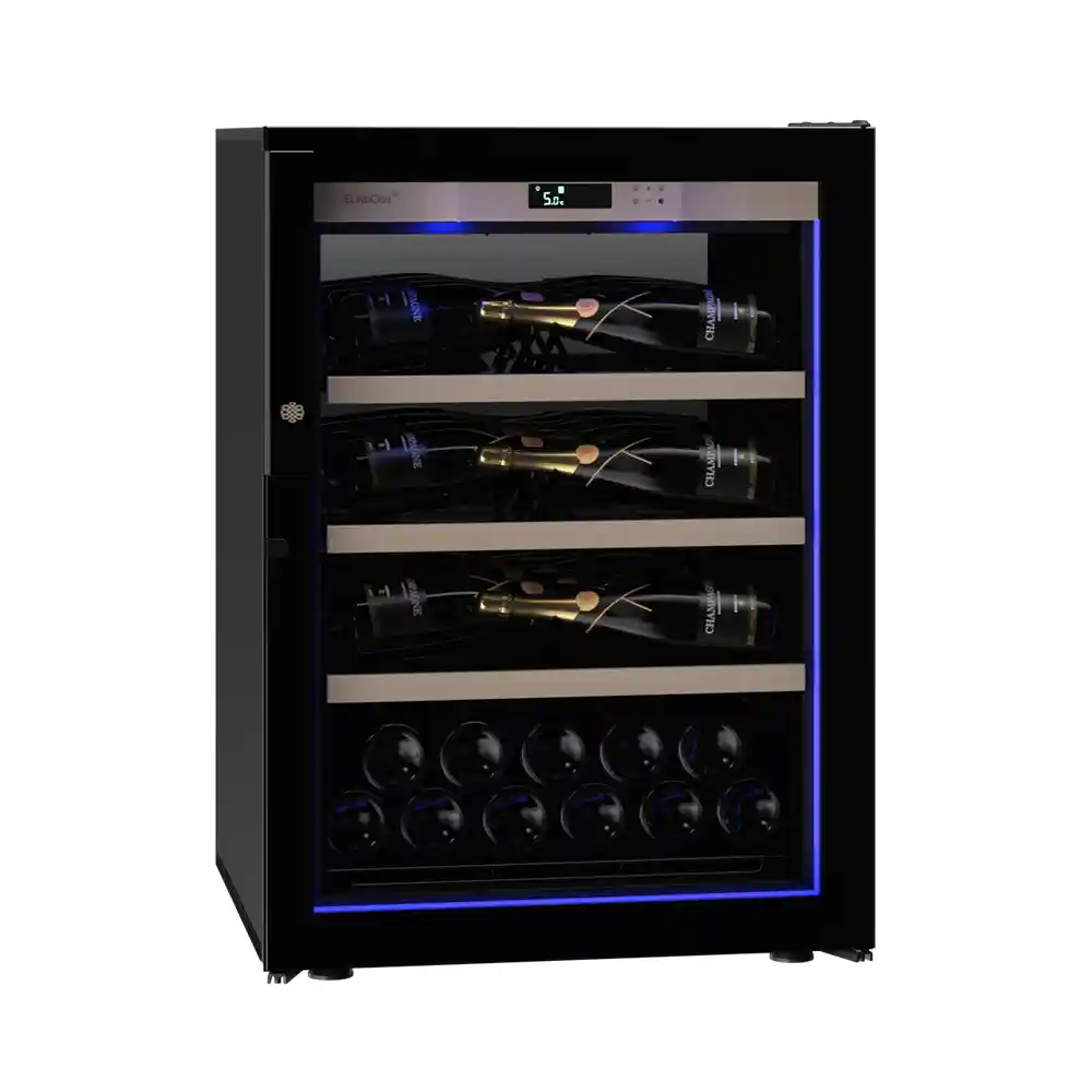 Dette vinkøleskab er lavet til at stå frit i al sin pomp og pragt og kan opbevare op til 35 champagneflasker i en enkelt temperaturzone (5-12 grader °C), hvilket er det optimale temperaturinterval for både langtidsopbevaring samt servering af champagne. Udover det lækre design og den flotte belysning, har vinkøleskabet også et meget lavt støjniveau på kun 37 dB, hvilket gør det oplagt til en fremtrædende plads i stuen, spisestuen, køkkenet eller vinrummet.