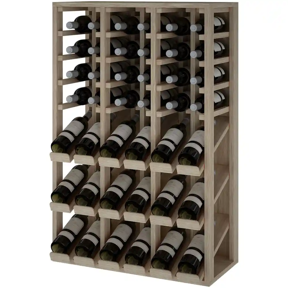 Denne model kan fås i behandlet spansk fyrretræ, massiv egetræ, sort-, brun eller hvidbejdset fyrretræ. Her har du mulighed for at fremhæve dine bedste vine i displayet.